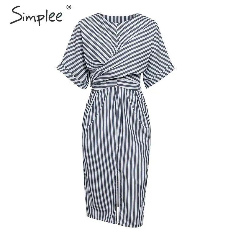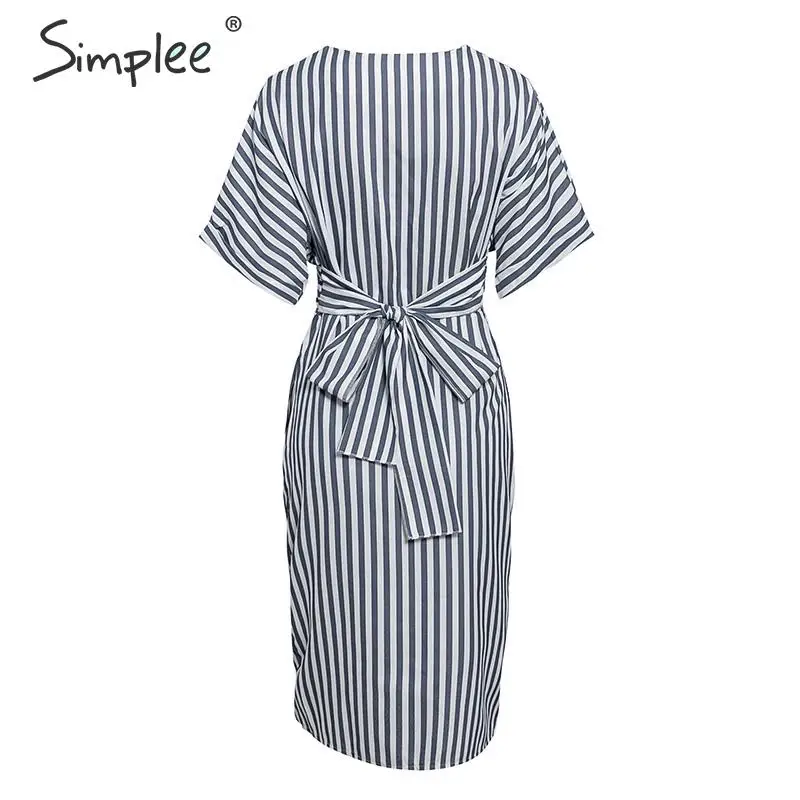 Plus size cotton striped women dress Summer style bandage split female long dress Short sleeve office ladies long dress